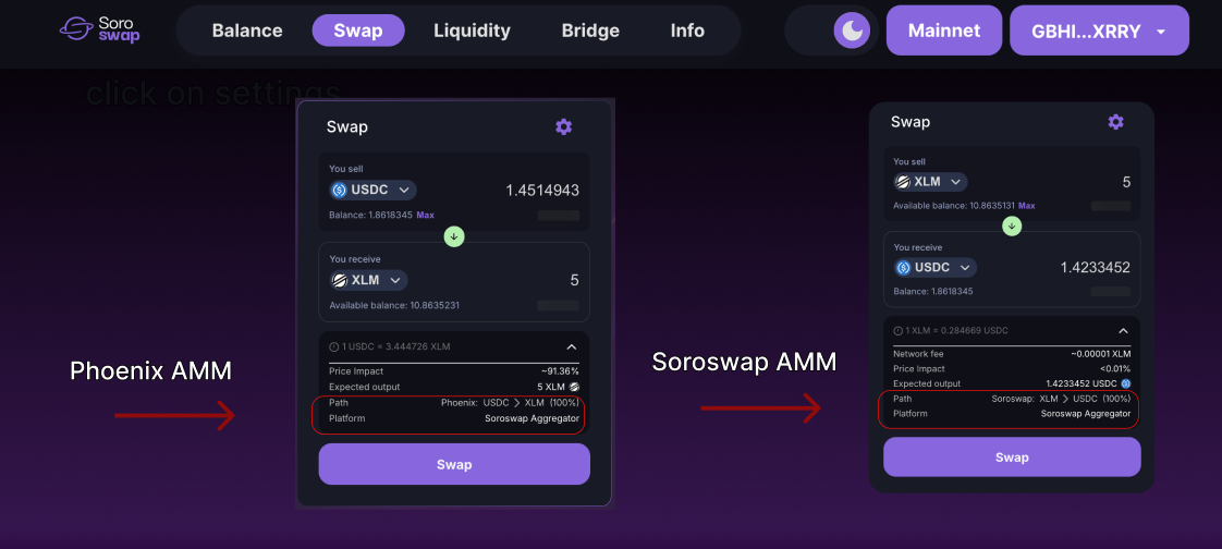 The Soroswap Aggregator is a smart contract that optimally resolves each swap by finding the best available price at the moment, using an intelligent distribution across the supported AMMs.